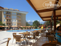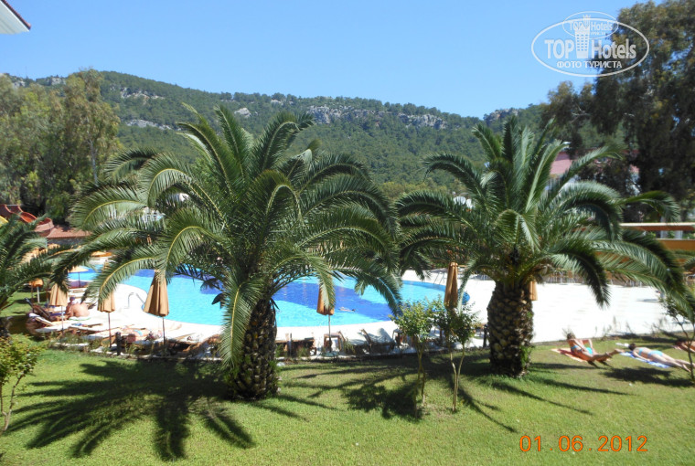 Территория отеля небольшая, но на ней умещалось все что нужно..был бассейн, бар, сцена, детская площадка и волейбольная площадка.