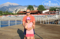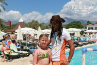 Всем добрый день! Хочу немного поделиться своими впечатлениями об этом замечательном отеле. Отдыхали в нем семьей с 24.05.12 по 5.06.12. В Турции были не первый раз, до этого тоже всегда выбирали пятерку и "ультра", но этот отель по количеству того, что он мог предложить опередил все предыдущие. Но хочется отметить, что отель на сто процентов русскоговорящий. В отеле один большой 7-ми этажный корпус и девять 3-х этажных. Но вид из окна с видом на море только из основного большого корпуса. Стандартный номер довольно большой, у нас еще была доп.кровать для ребенка, но тесно совсем не было. Уборка проводилась каждый день, также нам каждый день меняли постельное белье и полотенца. Все очень чисто. Сейф в номере платный, но мы не пользовались им, ничего за время отдыха не пропало. В отеле прекрасные бассейны с двумя детскими зонами, есть три горки, очень классный мини-клуб. Хочется отметить работу аниматоров - ребята развлекали народ целый день. И вообще, отель веселый, много всяких развлечений. Для молодежи и тех, кто едет с детьми - отличный вариант. Но если хочется тишины, можно расположиться на пляже или возле бассейна около главного здания. Хочется сказать большое спасибо поварам и официантам! Все всегда было очень-очень вкусно, разнообразно, столы всегда вовремя убирались. Большой выбор напитков, неплохое красное вино, много видов чая, кофе, соков и т.п. Через день проводились тематические вечера в основном ресторане. Кормили просто как на убой, причем целый день - в перерывах между завтраком, обедом и ужином - лепешки, шаурма, картошка с начинками, мороженое! Есть несколько ресторанов за доп.плату. Мы ходили в турецкий и рыбный. Рыбный ресторан - просто чудо, вкуснейшая рыба и креветки!!! Свободные шезлонги па пляже и около бассейна всегда можно было найти.