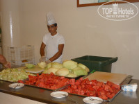 Питание отличное. Фруктов море. Хотя сама из фруктов ела только арбузы и дыни, иногда персики. Блюда всегда радовали глаз. Красиво сервировано, подано. Практически половина блюд готовилась на твоих глазах. По утрам ели блинчики и оладушки (чему сначала очень удивились). Через день какой-нибудь тематический ужин, то итальянская кухня, то блюда японской кухни. Спасибо шеф-повару. У меня даже есть фото с ним на память.) Напитки не соки это действительно разведеный юпи. Пили чай, коктейли. Готовили их так как просили, причем очень неплохо.