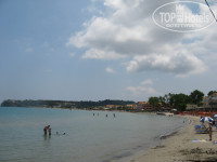 До моря минуты 3 пешком нога за ногу, но мы ходили на другой пляж. Вправо от нашего идти мин.10 там будет бухточка, очень красивая и море там чище и теплее было.