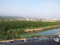 Отель встретил дружелюбно, с улыбками на лице. Быстро заселили. Изначально нам дали номер с видом на море, но прочитав отзывы о том, что там шумно из-за дороги-отказались и заселились в номер с видом на грязную речку, апельсиновые поля, шумную вентиляцию и постоянно приезжающими туда-сюда автобусами и машинами. Номер находился на 4 этаже. Лифт не дождешься, приходилось иногда идти пешком. Боковой лифт шел только до ресепшена. С реcепшена уже спускались на другие этажи.