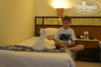 Прилетели мы в 11, ехать от аэропорта буквально 10-15 минут. Заселение начинается с 14.00, нам сразу одели браслеты и сказали может ходить везде и есть везде. Время прошло быстро, пока походили, пока сходили на обед – вот и заселение. Поселили в 7-й корпус на первом этаже.Номер был отличный, все работало и главное никаких доплат и вымогательств денег, еще 100 раз заглянули и спросили все ли устраивает и все ли хорошо) Так что номер – без нареканий. Да, пару раз к нам в гости приходил таракан, но я тут же показала его уборщику, он залил что-то в канализацию, больше гостей не было) Номер был тихий, по утрам было слышно песнопения муллы, но включенный кондиционер заглушал и его  Пару раз оставляла уборщику по 1 дол, но и без этого получала каждый день что-то накрученное на кровати (цветы, лебеди, один раз был даже слон! Супер ).