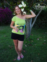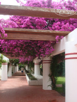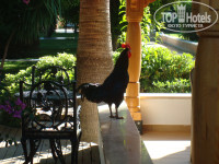 Территория отеля полностью оправдала мои ожидания: зелень, пальмы, дорожки обвитые цветущими растениями, плющ, покрывающий стены и потолки, бродячие петухи, которые кукарекуют по утрам - просто здорово! еще бы павлина и вообще было бы супер. Что особенно приятно - внутренняя территория полностью закрыта от проезжей части и общественных улиц, нет шума машин и взглядов посторонних (во многих отеллях, мимо которых мы проезжали, был такой минус).