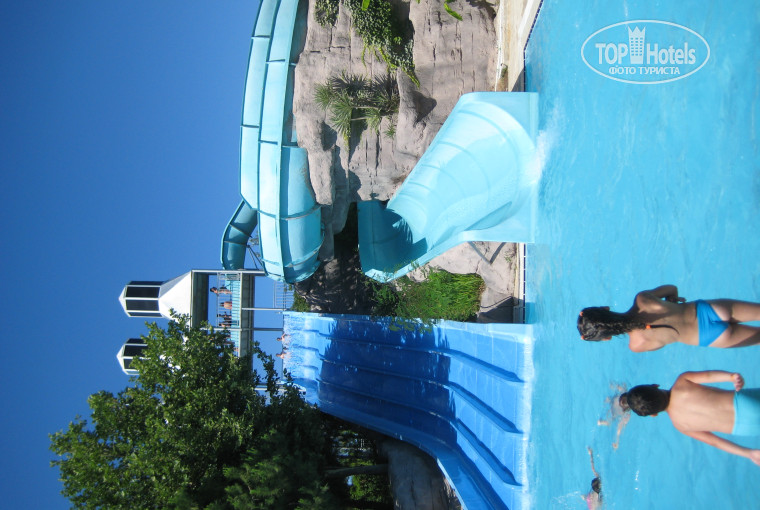 Есть две водяные горки, вполне хорошие, но настоятельно рекомендую очень внимательно следить за своими детьми (если они там катаются) перед их закрытием, т.к. в этот момент у многих детей срывает башню от желания прокатиться и самостоятельно задуматься о безопасности они не в состоянии. Горки закрываются дважды в день: на обед и в 17-00. Вобще-то на самой высокой горке стоит сотрудник безопасности и следит, чтобы дети скатывались с небольшим интервалом, но в ситуации с нами он ушел раньше 17-00, и следом за моей дочерью почти вплотную скатились две оголтелые девицы, влетев в воду со всего размаху прямо на ребенка. Слава Богу все обошлось ушибом и испугом. Но с того дня наши катания на горках заканчивались за 15 минут до их закрытия.