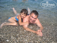 Отдельных хороших слов заслуживает пляж. Несмотря на обилие народа всегда было чисто, территорию убирают очень хорошо. А уж какая чистая водичка в море!!! Просто супер!!! Мы ходили на море когда народа практически не было - или в обед, когда расходились любители утреннего купания, или ближе к 18.00, когда солнце заходило за горы. Поэтому практически не загорели, но и цели такой не преследовали.