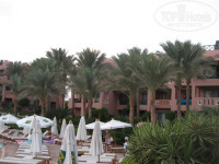 Из реальных плюсов отеля выделю территорию. Очень зелено, красиво, много цветов, пальм. Везде мягкие газончики. Бассейнов много, разной глубины, примерно от полу- до полутора метров глубиной. Около бассейнов есть несколько баров, которые работают весь день. Там и напитки, и подкрепиться можно между завтраком и обедом - делали пиццу, хот-доги с бараниной, сандвичи. Теннисный корт я бы на их месте убрал из перечня предоставляемых благ, это просто стыд. Убогая площадка под палящим солнцем, покрытая какой-то мелкой щебёнкой, провисщая сетка, ракетки с порванными болтающимися струнами. Волейбольная площадка есть, столик для настольного тенниса тоже. Даже ворота для водного поло)