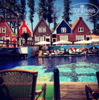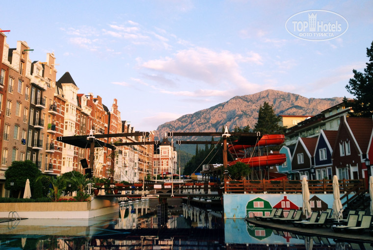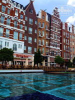 Начну с архитектуры. Если вы интересовались отелем и смотрели фото в интернете, то вы наверняка уже отметили необычность оформления и строения отеля. Он по-настоящему впечатляет: когда ты сидишь вечером за столиком напротив одного из баров, а мимо гуляют люди, играет музыка, кажется, что ты в самом сердце Амстердама летом. Только рядом с вами огромный бассейн, а впереди чистейшее море и потрясающий пирс с баром.