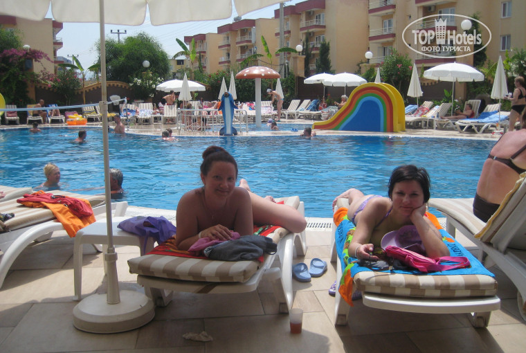 Отдыхали с родственницей с 20 по 29 июня 2012, все очень понравилось!!! Если не придираться и настроиться на отдых, то все очень хорошо!!! Разместили нас быстро, какие были недочеты с номером, их сразу устранили по нашему требованию))) Анимация весь день, все очень весело и интересно!!! Большое спасибо Тиме - он молодец, самый лучший аниматор в Алании!!! Кормили хорошо, кто не наедался всегда мог подкрепиться лепешками, которые пекли весь день для всех желающих))) Зонтиков и шезлонгов всегда хватало и у бассейна и на море.