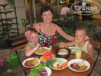 Питание для нас нормальное, голодным не останешься, но и выбрать особо нечего, утром для детей есть молоко и хлопья разные, в обед 2 супа красный и белый, наши ели белый(из броколи, или морковный, овощной , куринный и др.)А на ужин детей накормить можно только спагетти или рисом-острым, дают котлеты но они соевые наши не ели. Фрукты давали каждый день. Пляж находится в 500 метрах от отеля что не очень удобно, но мы ходили каждый день нам нравилось море, хотя волнореза нет и волны всегда. Нам понравилось в алньи но в этот отель мы вряд ли поедем.