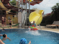 Вообще отель понравился, только питания детского практически нет.О еде напишу позже. По приезду в отель разместили быстро, я ездила с сыном (5л) + подруга которая тоже была с сыном (5л), поселили во 2 корпус, номер с 2 комнатами прихожей, балконом и ванной и ещё кладовкой(бывший душ- мы туда вещи складывали). Все корпуса кроме главного находятся после подземного перехода( это 1,2,3,4, 5 и 6 корпуса) всего 4 бассейна, 2 у главного корпуса и 2 у 1,2,3,4, короче после перехода.У главного бассейна есть горка, грибок и дельфин-которых включают 2 раза в день, наши дети сначала ползали в маленьком бассейне(1 день), после в нарукавниках перебазировались в большой, катались с горки, мы жили 2 недели и наши мальчики научились плавать переплывали большой бассейн без нарукавников.Вечером была детская анимация, мы привезли свои мультики и Мустафа и Тим(это аниматоры) перекинули их себе, а то 1 неделю показывали ледниковый период -2, на английском и это изрядно надоела, короче все мультики на русском это мои )))) Детская дискотека для детей очень нравилась ребятам.Ещё 2 аниматора турка- девушка (принцесса)и парень клоун или султан ( они переодевались к ужину в такие наряды)тоже развлекали детей, но по русски практически не говорили. Для взрослых дискотеки нет аниматоры возят в Аланью.