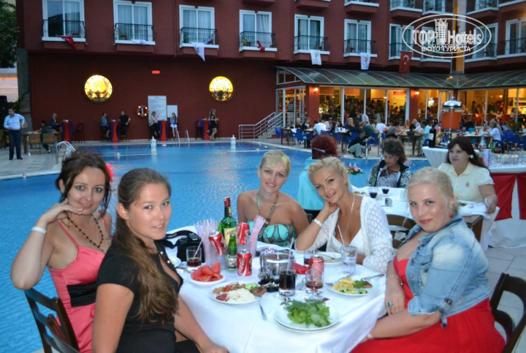 Аниматоры трудятся для отдыхающих в поте лица: развлечения у бассейнов, различные игры, конкурсы. Очень позитивные, дружелюбные и веселые ребята, скучать нам не давали. Для тех кто приехал с детишками всегда найдутся занятия. Девочки аниматоры увлекают их с самого утра, детишки ходили довольные. Вечером команда аниматоров проводит анимацию сначала для маленьких, потом начинается вечернее шоу для взрослых. Каждый день шоу старались делать новое, конечно немного пошло иногда было. Но это Турция и почти везде, где я отдыхала шутки приблизительно одинаковые!! Но ничего мы ходили на крышу (кстати очень прикольно, что шоу проходят на так называемой крыше-веранде, с которой виден Кемер, вечером очень красиво). После шоу начиналась дискотека, на которой мы отжигали по полной, а потом ребята-аниматоры везут всех желающих гостей в клуб.