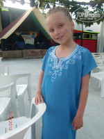 Можно заказать у аниматоров за 20 DT любых размеров; детские - белого цвета, взрослые - разных цветов. На груди будут изображены ИМЯ по желанию + логотип отеля RiADH CLUB, на спинке - выбранный вами РИСУНОК из имеющихся у них штампов (Hello, Kitty! Человек-паук и др.) Футболка была готова на следующий день. На вечерней анимамации Хасин демонстрирует и вручает их заказчикам.