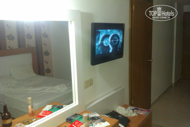 Были с женой с 26.06.12 по 07.06.12, присоединяюсь к двум предыдущим комментариям, отель действительно хорош для тройки, никаких проблем с размещением не было , сразу дали уютный и хороший номер с видом на бассейн, где был кондиционер, фен, телевизор, вообщем все удобства...мини бара не было, но и не нужен особо...
