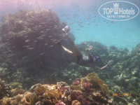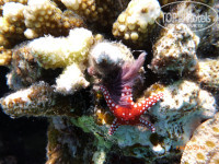 Ехали в этот отель в основном из за бухты в которой он находится , так как уже отдыхали в соседнем Клуб Фанара и точно знали куда едем . Честно говоря напротив Фанары кораллы и вся экзотика поинтересней но ни кто ни кого не контролирует , плавай где хочешь . Но вот конечно очень жаль что почти каждый день после обеда вода становилась мутноватой . Видели один раз возле пирса плавающий мазут от экскурсионных корабликов . Да и хотелось бы что бы сам пляж получше убирали . Но мух на пляже нет .