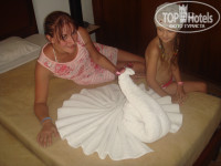 Номер убирали каждый день. Несколько раз случайно заходила в номер и видела, что кровати сдвигались, полы действительно мылись, а не просто протирались. Каждый день оставляли по доллару, взамен получали корзины цветов, дополнительные бутылки с водой, оригинальные фигурки из полотенец.