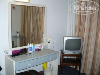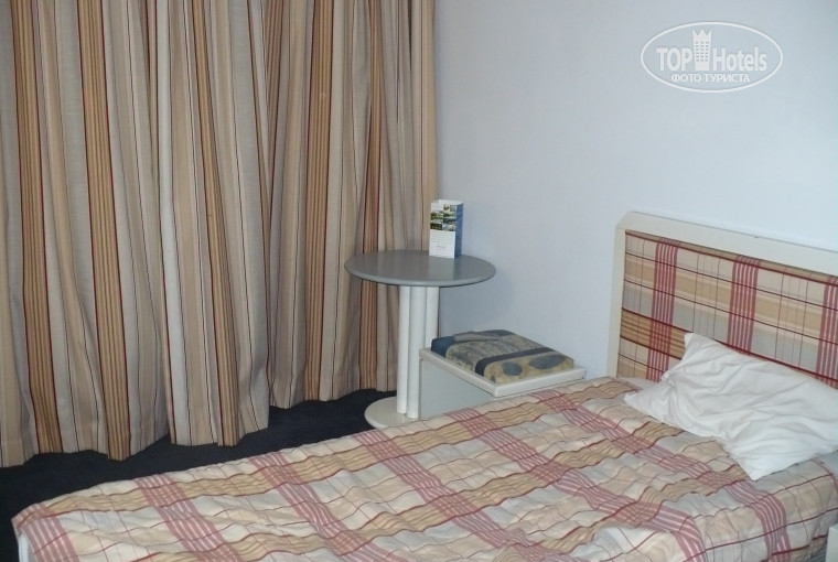 Номер старый, маленький, на полу палас, его пылесосили 2 раза ЗА 2 НЕДЕЛИ! Балкон маленький, кондиционер старый, центральный, климат-контроль отсутствует, подольше оставишь - замерзнешь, у некоторых говорят он вообще не работал, из его же вытяжки к нам приходили иногда запахи еды, алкоголя и иногда канализации, в некоторых номерах пахло только канализацией. У нас был 101 номер!