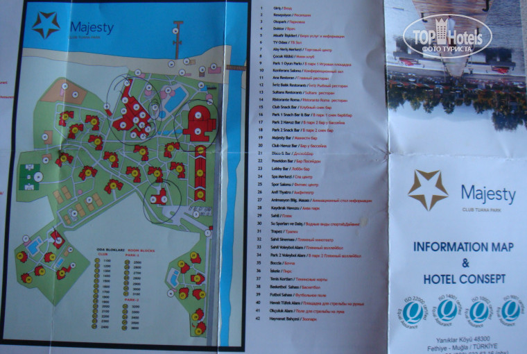 Все инфраструктура отеля достаточно хорошо продумана. Все увеселительные места и бары находятся в одной части отеля. Про питание много писали - все вкусно и разнообразно. есть детский стол, фрукты. В обед и ужин бывает и мясо и печень и рыба. Три аля карта. Рекомендую только турецкий. Посетили три, но выделился именно турецкий. Вино рекомендую Розовое. Пиво - темное. стоит внизу в холодильниках. Вода минирильная натуральная газированная в бутылочках 0,33 в маджести баре и посейдон баре - заказываете не стесняйтесь. Так как мало кто знает. Им бы повесить карту напитков у бара. Море теплое. есть рядом дикий пляж песчаный. идти до него 1 км. интересно но жарко. Река впадает рядом с отелем в море. не канализация. проверенно. можно даже порыбачить. неплохой спа центр. 2 сауны и хамам бесплатные. зона отдыха в нем свободна всегда. можно провести там время в дневной зной. Жили в клубе, но есть парк 1 и 2 - на любителя что первый что второй погулять. У них есть своя минимальная инфраструктура. Отдыхают в основном европейцы. Много англичан и немецких турков. Отель зелен. Персонал доброжелателен. Все очень комфортно. Явных минусов выявлено не было. Даже в максимальный заезд есть лежаки. нет очередей. напитки западные в наличии. Природа не может оставить равнодушным. очень похожа на адриатику, в частности на Хорватию. Справа от пляжа есть каное и водные велосипеды - это бесплатно можно брать и кататься. Аниматоры зазывают на конкурсы и стрельбы. Спортзал есть, но на жиме лежа веса до 60 кг только. беговые дорожки есть. теннисные корты бесплатно. поле для баскетбола также есть и для футбола. с 7 вечера начинается полив территории, передвигаться надо осторожно, неожиданно можно принять душ из поливочной системы. кондиционер в номере работал хорошо. есть комары - бериите фумитоксы. Приятного отдыха.