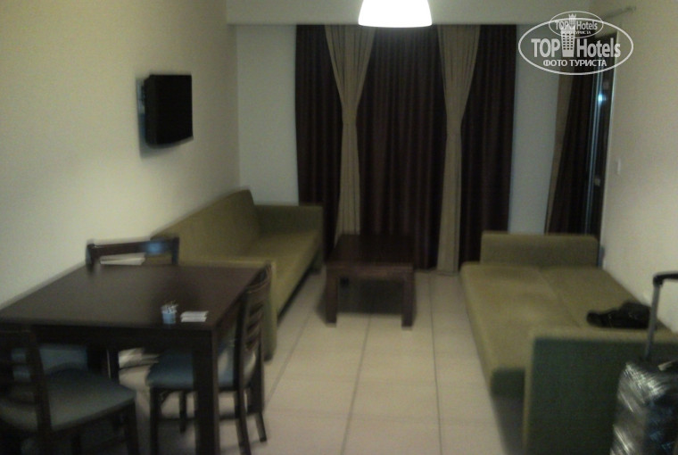 Постараюсь кратко. Отдыхали от Библиков всей семьей (4 человека, 2-е взрослых детей - 17 и 19 лет), 01 июля вселились, 13 июля выехали. Въехали вечером в 20:30, быстро. Закинули вещи в номер и бегом на ужин (по графику до 21:00). Зря спешили, если бы пришли в 21:00, то не опоздали бы. Номер Дубль бэдрум. Нам показался достойным, на первом этаже. Были несколько недостатков: лампочка при входе не горела, гайка шланга душа треснута и вода струей била на пол, сейф запер, холодильник не работал. Подошли на ресепшен, девушке сказали, пришли все исправили. Проблема с тараканами. Они огромные и летают. На ресепшене попросили что-то сделать, сказали, что попробуют, но: "Это Кипр! Они везде!" Но, слава Богу, они появлялись редко и по одному, и мы их просто выкидывали. Жук - как жук, и ни чего в нем нет. Убирались, меняли белье и простынь каждый день.Клали 1 евро на бумажке, приходили, евро не было, зато было чисто. Можно не класть, будет то же самое. Дверь, если случайно захлопнется, ключ без лишних расспросов выдадут на ресепшен. В номере розеток много, но к ним нужен адаптер. Адаптеры опять же на ресепшене за депозит в 2 евро (когда выезжаешь по возврату адаптера, возвращают и деньги). Можно купить и в маркете, тоже 2 евро, только он дома на фиг не нужен. Утюг нужно брать на ресепшене (все через него) - депозит 10 евро. Погладил, вернул - вернули 10 евро. Стираться в отеле дорого. Самое дешевое - это 95 центов постирать носовой платок. Выходишь из отеля, сразу налево, на барную улицу, за итальянским рестораном, справа, есть автоматическая прачечная. За 4 евро там постираешься до 8 кг шмоток, и за 2 евро высушишь в сушилке. (для сравнения: постирать в Евронапе рубашку стоит 3,85 евро). Пока стирается, можно в кабаке посидеть, в магаз сбегать, тут же за 1 евро 30 минут в инете посидеть (правда жарко).