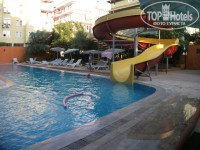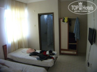 Был с женой и сыном в июле 2012 года,14 дней.Заселили раньше времени(без проблем),номер дали на 3 этаже,в номере жк телевизор(около 10 спутниковых русскоязычных каналов),индивидуальный кондиционер(бесплатный и исправный!!!,а не как писали выше что мол за 3 доллара в день и вечно не работающий),обстановка в номере конечно скромная-три кровати(матрасы свежие,новые),шкаф,пуфик,тумбочка,зеркало с ящичком и пара стульев на балконе.Холодильничка правда нет(а иногда так его не хватало...)Бельё и полотенца белоснежные,чистые.Шторы и тюль на окнах тоже в порядке.В ванной комнате-кафель.Вода горячая и холодная есть постоянно.В общем в номере всё чисто и всё исправно работает.Все номера в отеле обставлены,укомплектованы и отремонтированы одинаково,различаются только размерами.Убирались в номере каждый день,воровства не замечено(ничего не прятали,все вещи,телефоны и документы лежали в номере).В коридорах,на лестнице,в лифте-тоже чисто и порядок.Тараканов и зловоний-нет! Персонал приветливый,к отдыхающим относятся хорошо,без хамства,что у них просили-всё исполняли,надо быть человеком и к тебе будут относиться по человечески,или как говорится-будь проще и люди сами к тебе потянутся.Чаевых персоналу отеля(горничные,бармен,ресепшен) за всё время оставил где то долларов 7-8...Правда вот с русским языком у них проблема,но понять друг друга всегда можно-что то на русском,что то на английском,что то с помощью жестов...))). Питание однотипное,нам за 14 дней конечно всё надоело:суп,макароны,рис,отварной картофель,варёные яйца,баклажаны с мясом,курица,говядина,котлетки и фрикадельки местные,соевые сосиски и колбаса,сыр,оливки,масло,джем.Салатов видов 6-8.Хлеба в достатке.Арбуз был всегда.Чай,кофе растворимый,молоко.Выпечки,тортиков нет.В общем с голоду помереть не дадут.Питание происходит на улице,под навесом,рядом с баром и бассейном.Территория отеля конечно маловата...,на территории присутствуют муравьи мелкие,но как ни странно ползают они только по земле,на людей,на столы почему то не лезут!!!))).Вообще то в Аланье много муравьёв по всему городу...Очереди в столовую на раздачу наблюдаются,но эту очередь создают сами отдыхающие(боятся что чего то не хватит и выстраиваются перед открытием).Мы приходили ближе к закрытию столовой,очереди не было и всегда всего хватало,даже добавку давали без проблем.В баре очередей нет(2-3 человека ведь не очередь),по системе "всё включено" наливают водку,ракы,вино красное и белое,пиво(было даже наша Балтика 7),фанта,спрайт,кола и обычная газированная вода.Есть отдельно стоящий кулер с водой.Все остальные алкогольные напитки типа виски,коньяк,ром и коктейли-платно.Все напитки наливают в стеклянные бокалы и рюмки,пластиковой посуды нет.Анимации в отеле тоже нет,развлечения для взрослых и детей заменяет бассейн и водная горка.Недалеко находился 4-х звёздный отель,видели один раз там анимацию-ни слова по русски,что о чём они там совершенно не понятно,как говорят-анимация на русском в Аланье большая редкость.Так что такая анимация и за даром не нужна! Постояльцы отеля в основном местные турки-молодёжь,семейные пары с детьми.Россиян мало.За 14 дней было человек 12-15 из России.Так же потом в один день заселили 35 человек из Риги. Конечно основной плюс этого отеля-это его месторасположение.До пляжа метров 250-300,по прямой улочке от отеля,через це