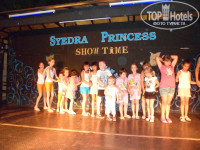 Мы отдыхали с дочкой 9 лет и друзья с дочкой 10 лет. Отдых в целом удался, питание, обслуживание хорошее. Мебель в номере староватая для 4, мы в 2011 году были в 3+ так там мебель была новая, ну это мелочи, так как в номере только спали, а все время на море и выезжали на экскурсии. Аниматоры молодцы, дети наши были в восторге, да и мы тоже. Покатались на банане, возле отеля, отлично, были на рафтинге - мужчины в восторге, для женщин и детей вода в речке холодная 15 градусов всего, но впечатлений конечно масса, были на яхте Викинг с пиратскими анимациями для детей, они клад искали, очень понравилось как детям так и взрослым. Выезжали на пляжную дискотеку всем отелем, отличное неоновое и огненное шоу, пенная вечеринка. Впервые столкнулись с покупкой экскурсий на улице, думали сэкономим, купили на рыбалку, машина к отелю не приехала, благо что недалеко покупали, пошли нашли продавца, он начал отмазываться, в итоге вызвал такси и отправил нас якобы на рыбалку, привезли нас в горах на водопаде ресторан где готовят рыбу, покормили и назад привезли в отель, короче с боем он нам вернул только 50% от стоимости приобретенных путевок, а мы их брали 2 экскурсии на 2 дня. Так что лучше переплатить гидам находящимся в отеле чем за меньшую сумму испорченную экскурсию. Отдельно хотела сказать про турецкую баню в отеле, хоть мы и ходили с мужем на массаж весь отдых, потому что планировали (массаж и отдых это супер) женщина которая там работает очень нам не понравилась, слишком назойливо и некрасиво, напористо она предлагала услуги, а после полученной полной предоплаты за все сеансы она в таком тоне начала с нами разговаривать, очень нехорошая женщина, а мальчишки на массаже молодцы конечно. Персоналу большой привет из Казахстана, молодцы, нам понравился отдых у Вас!