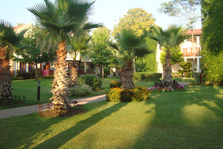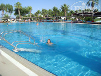 Территория отеля достаточно большая, разделена на Парковую и Клубную зоны. Клубная зона на мой взгляд удобнее, т. к. она ближе к основному бассейну и пляжу. За то в Парке тихо и больше тени. Для турецкого отеля море зелени, есть зоопарк. Несколько бассейнов, 3 водные горки, есть Интернет в лобби баре.