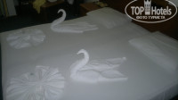 Заселили нас на удачу быстро через час.мы приехали в 10 по местному.а вот у многих были проблемы.когда переполнен,отправляли в другой отель.но вообщем Женщина на ресепшене все утрясала! ОБРАТИТЕ внимание!дискотека проходит в подвале возле ресепшена до 02,00!!!селится на первом этаже с детьми не стоит!видела сама как женщина в 01,00 ночи писала заявление на переселение...думаю геморроя ей хватило что бы переселиться.еще.мы не чего не доплачивали за заселение.а только дали чаевые.жили на 2 ом этаже.все норма.номер на бассейн.музыка не мешала.Уборка каждый день.а за 1дол. вообще чистота и свежая пастель)))!!!