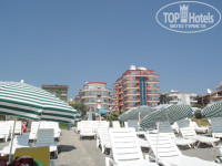 Территории как таковой нет, но объективно говоря это и не нужно, Махмутлар очень красивый поселок , там есть где прогуляться. К тому же вечерние прогулки, когда жизнь только начинается( местные ,наверное, вообще не спят), дают возможность проникнуться духом страны.Возможно тем, кто боиться покидать территорию отеля и не понравиться .Прямо рядом с отелем , от ближайшего перекрестка налево, есть супермаркет "а-101", а чуть подальше- гипермаркет "Migros"( будте внимательны, скидки в нем только по карте ) , и базарчик , где вечером продают национальные поделки и украшения. Налево от перекрестка ,если пройти дальше в поселок, есть банки , магазинчики сувениров, рестораны, супермаркет GENPA .