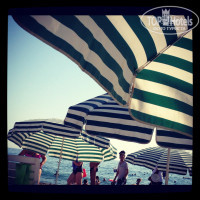 Лежаки бесплатные с зонтами, матрасы на пляже стоят доллар ( у бассейна бесплатно)