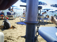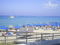 Теперь то ради чего мы все собственно сюда и прилетели –МОРЕ!!! и ПЛЯЖ!!! От отеля они довольно близко (специально посчитал – 300 шагов от крыльца до песочка), достаточно пройти по небольшой улочке, дорогу переходить не надо. Море очень теплое, прекрасная прозрачная светло-бирюзовая вода, песчаное дно….. в общем мечта!!! В некоторых местах при заходе есть россыпи мелких камней но это не везде и не напрягает. Для любителей поплавать с маской: ближе к левому пирсу под водой есть каменистая гряда – можно понаблюдать за подводным миром. За 14 дней пребывания 4 дня был небольшой шторм с волной 1-1,5 метра, так что заряд адреналина и удовольствие от кувыркания в волнах получили в избытке, ни какого аквапарка не надо! Пляж муниципальный (как нам объяснили- на Кипре частных пляжей почти нет) и тянется на несколько километров, а вдоль него – полоса отелей. Между отелями и пляжем неширокая дощатая прогулочная аллея, на которой по вечерам много гуляющих. В некоторых местах прямо с аллеи можно выйти на главную улицу города и вернуться в отель уже через город (если прогулка вдоль моря надоела). Загорать и купаться можно на любом понравившемся месте - расценки везде одинаковы: 2,5 евро- лежак, 2,5 евро-зонт. То- есть на двоих в день -7,5 евро. Обратите внимание, что на каждом участке пляжа свой сборщик денег и если вы взяли билетик в начале пляжа а потом решили перейти на другой участок то там на лежаки и зонт по этому билету можете не рассчитывать. Если уходите с пляжа на обед или еще куда но планируете вернуться лучше не оставлять лежаки пустыми- могут занять. Положите полотенце придавите камешком и спокойно идите- никто не тронет. Да- билетик лучше не оставлять всунутым в зонт а взять с собой (спокойней будет). Можно обойтись и без платных зонтов с лежаками но для этого надо везти с собой или купить на месте пляжный зонт и подстилку –циновку с термоизолирующией фольгой (песок очень горячий). Подстилка продаются везде, приблизительно по 5-6 евро, на зонты внимания не обращал. Вдоль всего пляжа тянется сеть различных ресторанчиков, кафе и таверн на любой вкус и кошелек, так что если лень идти в отель можно перекусить и там. Народу на пляже в будние дни умеренно, по крайней мере проблем с местами не было, а вот выходные дни это отдельная песня. Приезжают отдыхать местные жители, шум, гам, мест не хватает, к душу очередь, все кафе врубают музыку на полную катушку стараясь перекричать друг друга. В общем удовольствие не такое как в будни. Поэтому советую на выходной день взять куда ни будь экскурсию. Обидно что после выходных на пляже мягко говоря грязновато и никто не убирает (через день песочком занесет и хорош) но ходить по окуркам и огрызкам в понедельник не особо приятно. Хочу предостеречь тех кто будет брать лежаки и зонт на пляже – стойка зонта из двух частей вставляющихся друг в друга. Скрепляются части болтом, который торчит из них сантиметра на три (можно увидеть на фотографии), так что будьте аккуратны – очень легко пораниться (испытал на себе). Но что поделать – муниципальный пляж – не частный.