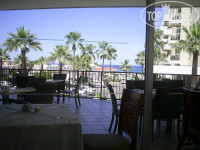 Сам отель небольшой, русскоговорящего персонала мало но все же есть, так что объясниться можно. Имеется спорт-зал в цокольном этаже, бильярд, зал игровых автоматов для детей, бассейн с мостиком (небольшой и неглубокий, две чаши диаметром порядка 3 метров на глубину 1,9м а все остальное 1,3-1,4м) лежаки и зонты-бесплатно, бар у бассейна. Своей территории у отеля практически нет. Кстати если вы захотите отдохнуть у бассейна то есть несколько минусов: первый и основной на мой взгляд- это то что местные подростки (лет по 10-15) очень часто приходят сюда понырять с мостика в глубокую чашу и занимаются этим самозабвенно с полным непониманием того, что вокруг есть еще люди. Потом садятся на край бассейна и уплетают принесенные с собой бутерброды части которых иногда падают в бассейн что то же не очень приятно. (Вообще не очень понятно почему администрация не контролирует доступ в отель; кроме прохода через рецепшен есть еще два неконтролируемых входа с улицы и один со стороны бассейна через соседний отель. Охраны в отеле нет вообще, так что ходи кто хочет. Демократия это хорошо но не настолько). К двум другим минусам бассейна я отнес бы высоковатую температуру воды (38-42 градуса, специально замерял) и обилие мух у лежаков (может растущие вокруг кусты стоит чем-то обрабатывать?). Очень жалко что в отеле абсолютно отсутствует какая-либо информация на русском языке (меню, карта вин и коктейлей в баре, описание инфраструктуры отеля, анимация и т.д.). Про все надо либо спрашивать (а всего не спросишь) либо узнавать по принципу пришел- увидел. Будем надеяться, что это временный недостаток который вскоре исчезнет т.к. наплыв русских туристов за последнее время в этот отель черезвычайно вырос.
