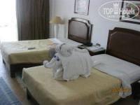 Всё супер! Отель отличный, много развлечений! Питание нормальное - много всего. В отеле ещё есть несколько ресторанов! Мест на пляже хватает для всех ещё с запасом))) На пляже работает бар, в нём всё есть! Все относятся очень доброжелательно! уборка ежедневно. почаще оставляйте чаевые уборщику!у нас за чаевые уборщик каждый день делал разный фигурки и ставил по 2 бутылки воды. убирался очень хорошо! в отеле вообще очень чисто! анимация очень весёлая! долго не забуду утреннюю музыку и их конкурсы. Рядом с основным зданием находится большой бассейн! Если захотите экскурсию, то лучше брать у агенства слева от отеля!!!! там дешевле почти в два раза, а разницы никакой!!! В отеле все говорят на русском языке (пускай и не на чистом)! В номере всё как написано в описании отеля! всё работает, а если при вас сломается, то прийдёт человек и всё починит! Мы жили в основном здании. иногда выключался 1 лифт, но всегда не больше чем на 30 минут! Утюг можно брать в фае! есть прачечная! каждый вечер проводятся разнообразные, очень весёлые конкурсы. Рядом с отелем много разных магазинчиков. У продавцов цены можете спокойно скидывать в 1,5 - 2 раза! Если продавец скидывает недостаточно, то просто начинайте уходить! он сам предложит вам цену ниже!!!рядом с отелем находится банкомат. а через дорогу банк, где можно поменять деньги! Море очень тёплое, входить в него по песочку очень легко!!! Отель стоит своих денег. Он лучше, чем некоторые 5* отели!!! Всё очень понравилось) Думаем поехать зимой)))