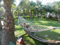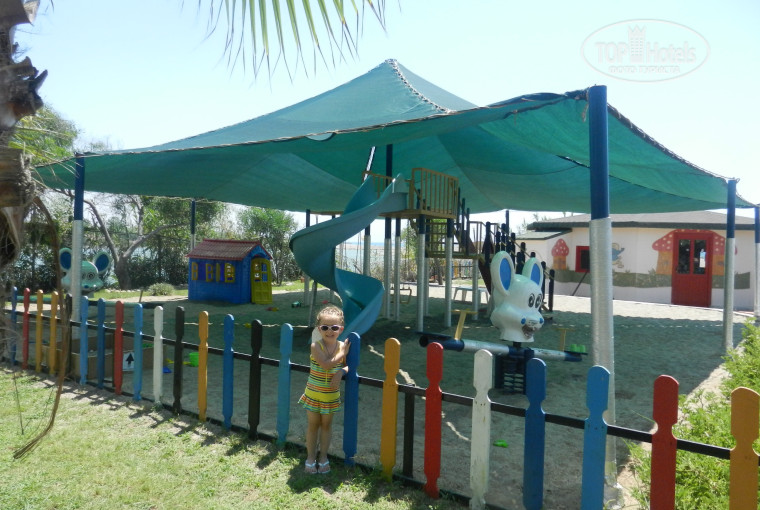 Территория довольно большая. Рядом с самим отелем располагались бассейны,в том числе и детский, а за бассейнами-была прекрасная озеленённая территория с гамаками, пальмами,цветами, домиками для массажа и отдыха...Так же там имелась детская игровая площадка,натянутая тентом, что меня лично очень привлекло. В отелях,которых мы отдыхали ранее,детская площадка была под открытым небом. Естественно,качели и горки нагревались и приходилось своему ребёнку отказывать в этом удовольствии..и конечно же в ответ был плач. Здесь же можно было и в самое пекло позволять ребёнку кататься.