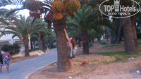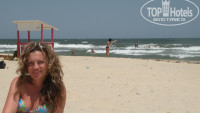 Пляж с широкой полосой песка. Лежаки под зонтиками надо занимать в 6 часов по местному вр. т.к зонтиков мало. Полотенца возьмите с собой, можно конечно взять в отеле под залог в 10 динар. На пляже бар еда та же что в ресторане ну может ассортимент меньше. Мы ходили в ресторан т.к. на пляже летом невозможно жарко солнце палит нещадно все-таки это Африка.