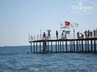 Море. В море вход ужасный, тем более для тех кто плавает плохо. Я отношусь как раз к тем, кто плохо плавает. Очнь пожалела, что не купила специальную обувь для моря. На входе в море плиты. я зашла в море раза 2 всего и при этом умудрилась подскользнуться и ударится. Больше туда не входила. В основном все прыгали с пирса. В весь период нашего пребывания на море были волны поэтому и с пирса не влазила в море. Пляж галечный, ходить босиком по нему больно. Лучше покупайте себе специальную обувь, не пожалеете.