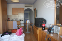 ПРОЖИВАНИЕ: Приехали в отель около 16-00 и нам тот час же выдали ключ от 208 «номера-студио», находящегося на вилле «Мимоза», хотя мы оплачивали обычный номер стандарт. А так же выделили транспорт для доставки нас с багажом до номера. Вилла «Мимоза», к сожалению, оказалась самой дальней виллой во всем отеле. Номер небольшой. В номере: мини-кухня с холодильником, плитой, чайником; две односпальные кровати, сдвинутые вместе; шкаф и тумбочки; телевизор и музыкальный центр, фен, сейф (платный); ванная комната с душем; небольшой балкончик со столиком и стульями; кондиционер. Из минусов: слабый напор воды, солнечная сторона, из-за чего находится на балконе было невыносимо жарко, муравьи, а главное - это отсутствие горничных в течение трех дней. Уборщицы просто не доходили до нас))). В конце третьего дня мы, устав бороться с муравьями (даже спрей не помогал), попросили поменять номер. Новый номер нам очень оперативно поменяли. Новый номер нам достался на вилле «Маргарита» с собственным садиком в тенёчке, где было приятно посидеть с книжкой, пережидая полуденную жару. В номере, так же как и в предыдущем, было все описанное выше, но добавились микроволновка и тостер))). Убирались в номере каждый день: меняли постельное белье и полотенца, мыли полы. Но, к сожалению, на второй день сломался кондиционер, а после починки шумел как трактор, что очень мешало ночью спать. Но все эти мелочи были ненапряжны, т.к. отсутствовали муравьи.