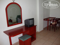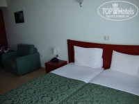 Номер большой с балконом. Приятно удивило, что есть кухонный уголок с плиткой, эл.чайником, посудой. В номере есть утюг и гладильная доска. Есть телевизор, пульт можно получить на ресепшн, залог 10 евро. Сейф в номере платный. Есть холодильник.