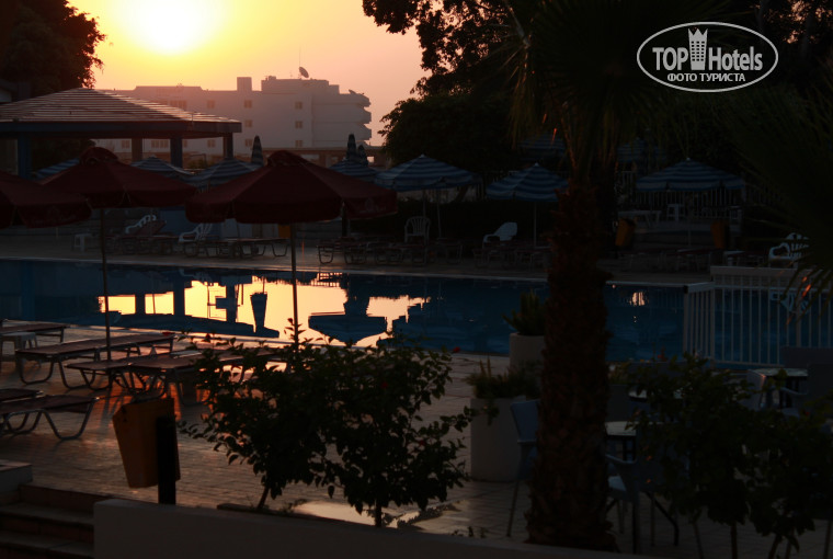 Территория отеля - бассейн с лежаками и надувные матрасы - пользуйся, не хочу! Бар при бассейне работал регулярно, те, кто ехал на всё включено пользовались баром без ограничений (на сколько я заметил). За отелем находится заброшенная стройка частных домов, но она ни чуть не смущала ходить сквозь неё на пляж. Стройка от отеля отгорожена большими деревьями, в которых шумят птички. Отель предназначен для отдыха с маленькими детьми, так и без них - семьями. Очень слабая анимация для взрослых и небольшая дискотека для детей. в 23:00 отель уже спит... Нам приходилось идти по торговой улочке в Протарас и там тусоваться (т.к. мы просто попали в тихий хороший отельчик) до 02-03:00 и возвращаться переночевать. ДЛя тех, кому нужны постоянные тусовки - п.Айя-напа! Ходит автобус = 1 евро.