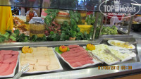 Главный минус - это действительно однообразные и невкусные мясные блюда. Жареные сосиски и нарезка одного-двух видов на завтрак, курица в разных вариантах и котлетки на гриле (вкус специфический, на любителя). Может ещё какое мясо и было, не заметила. Вкусная, правда, шаурма, из курицы опять же. Так что мы ели рыбу на гриле, её было вида 3-4, вкусная. Гарнир: всегда была картошка фри, пару раз пюре, очень вкусный рис, перловка, макаронки 3 видов. И огромное разнообразие овощей: огурцы - помидоры в разных вариантах, тушёные и жареные баклажаны, цветная капуста, салаты из капусты, морковь, свёкла, кукуруза, фасоль, очень много свежей зелени. Кроме этого много всяких маринадов: перчики, огурчики, оливки. Были и всякие салаты с майонезом, соусы какие-то, всё это надо пробовать, чтобы понять, из чего это приготовлено. Фруктов много разных (но мы сами с юга, нас этим не удивишь), в обед всегда дыня, вечером - арбузы. В целом питание разнообразное, но через пару - тройку дней выбираешь для себя, что действительно вкусно, а что нет. Например, супы. Пару раз попробовали, не понравилось. Стали брать что-то другое. Ну а для любителей новизны можно перепробовать всё! Кстати, ходили в Итальянский ресторан (резервация со взрослого 7 $, дети до 6 лет бесплатно, после 6 - 3 $. Не понравилось вообще, невкусно, пошли отметить день рождения, хотелось романтической обстановки.