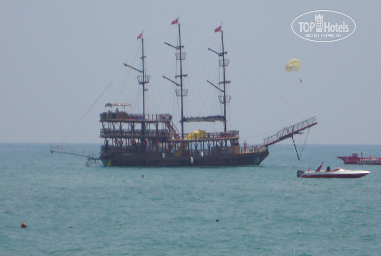 Ездили на экскурсию в Сиде на пиратской яхте 70 долларов за двоих, экскурсия длится 6 часов, в 13.30 отправление, где-то 1 час плыли до Сиде, затем 2 часа самостоятельно гуляли по городу, затем купались в чистейшем открытом море, потом ездили в бухту черепах, и под конец нас привезли на реку Манагавт, где также можно было искупаться в месте впадения речки в море, и под конец пенная дискотека прямо на яхте, в общем оочень понравилось!