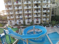 А так, в целом, отель очень даже. Территория маленькая, но всё компактно умещено. Бассейн классный. С одной стороны 1.90 м глубина,если кому интересно. Горка работает 2 раза в день. Море хорошее, вход конечно с камнями, но всё очень терпимо, ничего критичного, не понравилось,что на пляже отеля купаются местные. На море лежаки есть всегда свободные, у бассейна ситуация противоположная. Несколько дней полотенца просто не убирали(забронировали они места на весь свой отдых,умники хреновы), лично видела с балкона как одни и те же полотенца,лежали на одних и тех же местах. Вечером бассейн закрывали,а полотенца оставались лежать так до следующего дня, и так по кругу. Один раз все полотенца убрали и, видимо, отнесли на ресепшен. Об этом сказали на анимации,что делать так нельзя, но в этот же вечер с балкона наблюдала ситуацию, как парочка прошла под ограждением(просто натянута веревка), положили на лежак матрас и благополучно удалились. Так же, ехали на экскурсию очень рано, и видели, как дамочка несёт 3 полотенца, как же, надо же занять с утреца на всю семейку. Но иногда вечером перед закрытием, можно было найти свободный лежак, но тогда он уже и не был нужен особо.