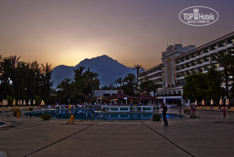 Территория радует, большая, красивая, много растительности. (Когда мы проезжали мимо других отелей ни один не мог похвастаться такой красотой). Сам отель старый. Более 20 ти лет. Такая и мебель. И если учесть что ежедневно отдыхает 1 500 человек, которые не особо заботятся об имуществе - ждать Ультра-Люкс нет смысла. Да есть проблемы с местами в ресторане, не рассчитан он на такое количество. Но если не бежать к самому открытию, а подождать минут 30-40, когда поесть первая волна, вполне можно спокойно покушать, еды хватает, ОЧЕНЬ много и разной. В основном наши туристы (99% в отели русские и украина).