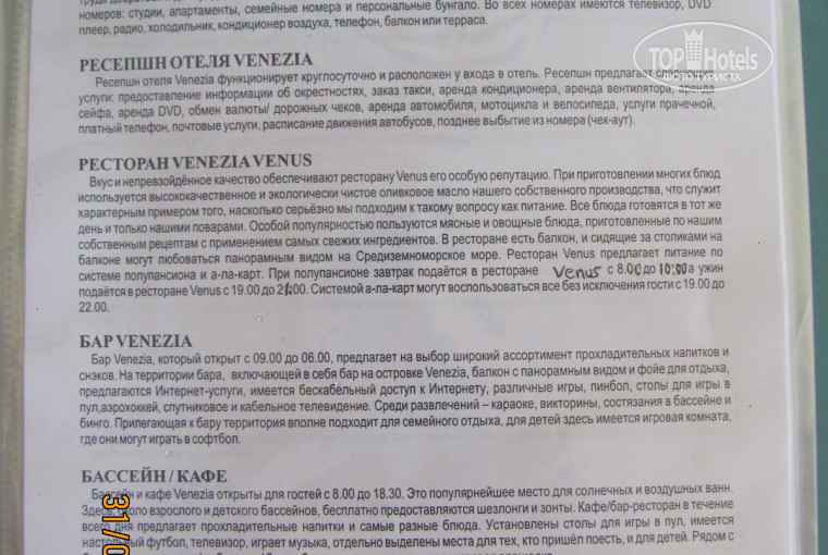 Информацию об отеле, взятую из номера привожу на фотографиях.