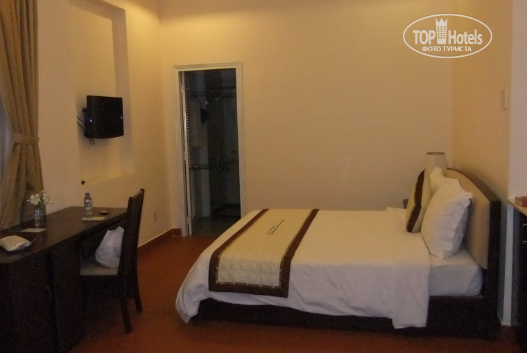 Проживание :В отеле 2 основных корпуса и виллы.Отдельных балконов там НЕТ!Вход в номер по общему балкону.Корпус с видом на сад самый дешёвый,там комнаты чуть-чуть поменьше,корпус с видом на бассейн по шикарнее конечно,но и на 30$ в сутки дороже.Хорошо обставлен,насекомых не обнаружено(и рекомендую не заводить,они придут если фрукты и газировку оставлять) Кровати удобные,полотенца чистые,убирают номер приемлемо,а если по 50 000 донгов(72 руб.) на подушке оставлять,то убирают ОЧЕНЬ хорошо,ещё и цветочки принесут))))а если чаевых не оставлять,тогда посуду не помоют))))