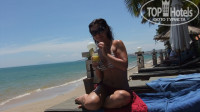Отлично оборудованный,чистый пляж(самый лучший по сравнению с соседними отелями) с большим количеством лежаков под зонтиками.Всем места хватало.Вдоль лежаков по пляжу ходят официанты,у которых можно заказать напиток или даже еду из отельного ресторана.