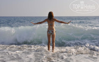 Море... какое там море!!! Вода - парное молоко. Мы с мужем загорали прямо в нём)), не жарко и тренировка для фигуры после такой кормёжки. Что касаемо волн, первые дня два они были маленькие, а потом...!! моей доче 13 лет, так я её только ими и заманивала в море, а то сидела она у меня больше в бассейне.