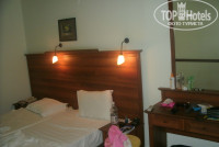 Номер небольшой, но оч для нас удобный, две комнаты, в одной были мы с мужем, в другой доча. В нашей комнате был кондиционер, у дочи балкон и телевизор, но с турецкими каналами.