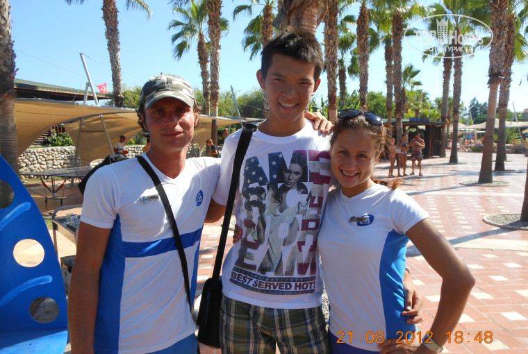 АНИМАЦИЯ! Просто СУПЕР! Не даст вам скучать ни минуты! Весь день различные игры: дартс, волейбол пляжный и водный, стрельба из пневмат. ружья, стрельба из лука, теннис большой и настольный, водное поло, футбол и всякие непонятные игры! Вечерняя анимация заставляет удивляться, как это им (аниматорам) только удается изо дня в день танцевать разные танцы! Очень ярко, весело и смешно! Очень хотелось бы отдельно выделить Юру - всегда бодрый, прекрасно организовывал волейбол каждый день, Джабу - весело вел латину и зажигал на Живой музыке, Катю - она, кажется вела что-то вроде гимнастики, но о ней впечатления самые приятные, как об очень улыбчивой девушке, с которой приятно поболтать, Кемаля - ооо, это вообще просто надо видеть!, Дину - каждый день на разных мероприятиях у бассейна, ну и всех девочек из мини-клуба! МОЛОДЦЫ!!!