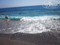 Наверное, самое главное и основное в отдыхе - это море. Ведь хочется плескаться не только в бассейне, но и на море. Море там, честно сказать, немного грязновато. Вход туда песчаный, но далее уже идут большие, слизкие булыжники - что не очень радует. На пляже выдают матрасы для лежаков, и не только выдают, но и все разлраживают как надо. Стоит только попросить. На пляже есть бесплатный бар с прохлодительными напитками типа "Юпи" и перекусить. Я все время ела там картошку фри, потому что только ее там и находила, остальное все съедали. На море лучше ходить в 5 часов, т.к солнце не такое палящее и можно получить хороший загар, вместо ожегов. А т.к я еще впервый день сгорела на солнце, то я старалась вообще избегать прямые и паящие лучи. Море само теплое, но штормило оно у нас, и очень соленое. У меня даже кожа пощипывала. А про глаза я вообще молчу, один раз маленькая капелька попала - всё, думала, что лишусь глаза! И кстати идти до моря по переходу метров 50-70, не больше, что очень радует.