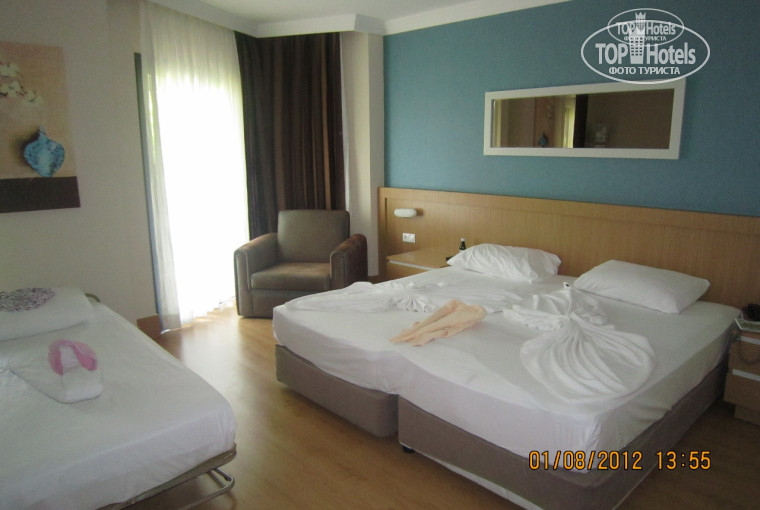 Немного "смазало" общее весьма благоприятное впечатление об отеле работа ресепшн при заселении в первый день (именно за это тройка за сервис). Несмотря на заверения туроператора о том, что забронирован номер в главном корпусе, нам был предложен бунгало. После быстрого отказа заселиться в бунгало сотрудниками ресепшн не менее быстро (без особого внимания и заинтересованности удовлетворить пожелания гостя) было предложено разбираться с туроператором. Представитель туроператора (находящийся в отеле в этот момент) направил нас разбираться с российским офисом и т.д. Но тут очень хочется отметить высокопрофессиональную работу службы отношений с гостями (guest relations). Отдельное огромное спасибо Марии! Заметив в холле отеля наши скучающие (в ожидании очередного звонка из Москвы) лица она сама предложила нам помощь и смогла решить проблему раньше туроператора! Факс от турецкого партнера нашего туроператора с предложением помощи мы получили позже, когда уже заселились в хороший номер в главном корпусе с видом на бассейн.