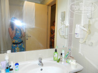 Интерьер в номерах отличный, очень чисто, уютно, ламинат, мягкие кровати, хороший кондиционер. Ванна тоже отличная, большое зеркало, много места для всяких баночек)))